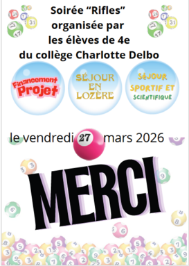 Soirée "RIFLES" organisée par les élèves de 4ème : le vendredi 27 mars de 17h à 22h